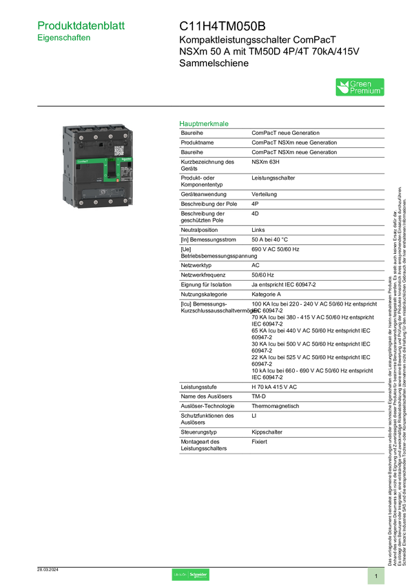 C11H4TM050B Wyłącznik zasilania Schneider Electric C11H4TM050B 1 szt.