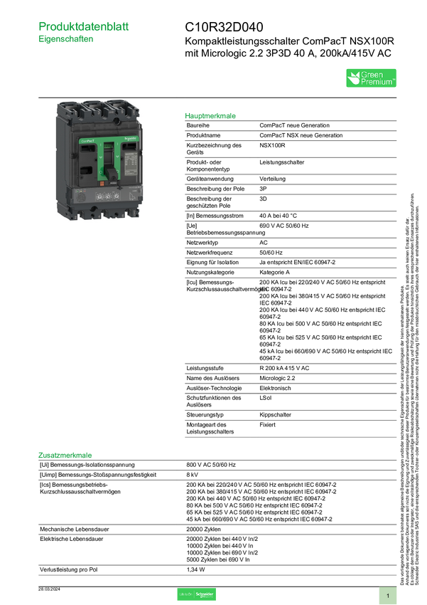 C10R32D040 Wyłącznik zasilania Schneider Electric C10R32D040 1 szt.