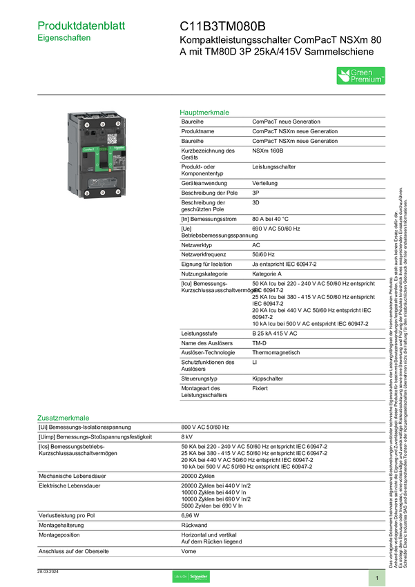 Wyłącznik zasilania Schneider Electric C11B3TM080B 1 szt.