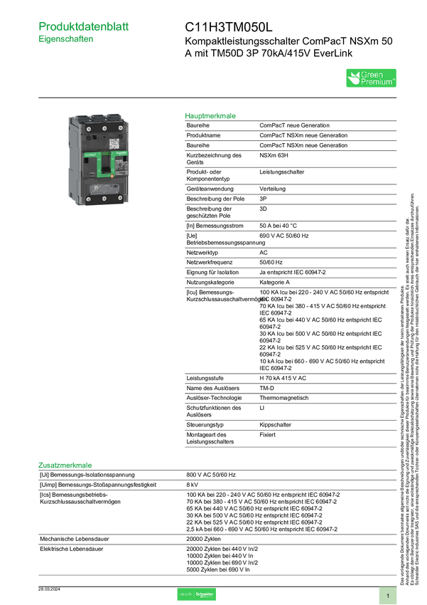 C11H3TM050L Wyłącznik zasilania Schneider Electric C11H3TM050L 1 szt.