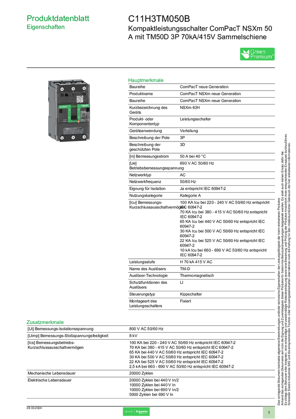 C11H3TM050B Wyłącznik zasilania Schneider Electric C11H3TM050B 1 szt.