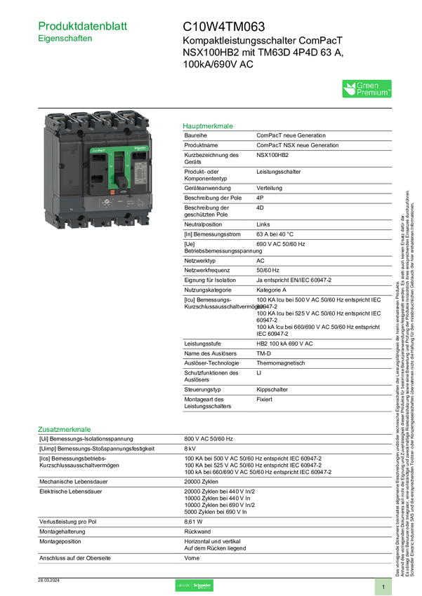 Wyłącznik zasilania Schneider Electric C10W4TM063 1 szt.