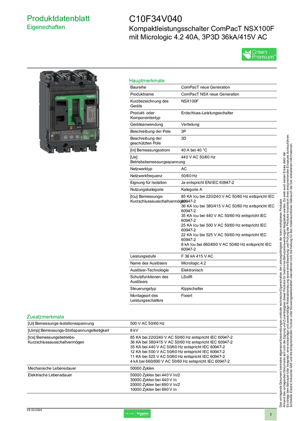 C10F34V040 Wyłącznik zasilania Schneider Electric C10F34V040 1 szt.