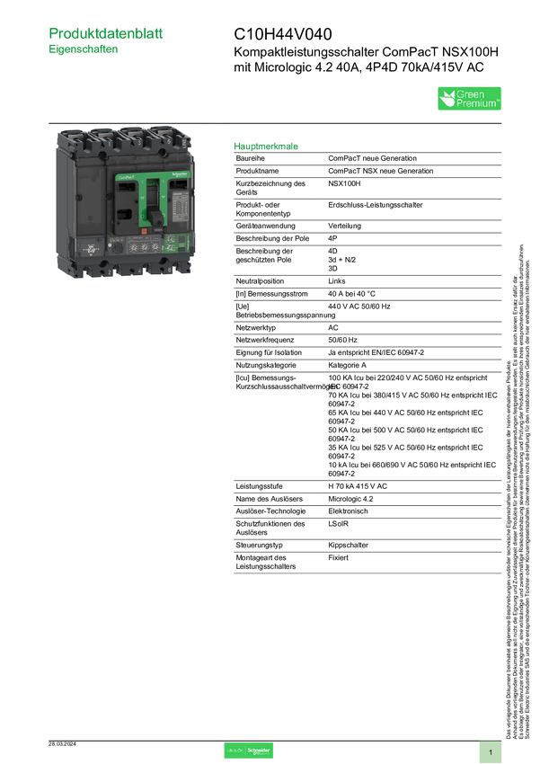 C10H44V040 Wyłącznik zasilania Schneider Electric C10H44V040 1 szt.