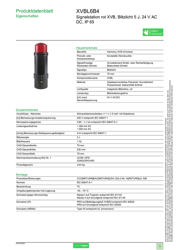 Kolumna sygnalizacyjna Schneider Electric XVBL6B4 XVBL6B4 1 szt.