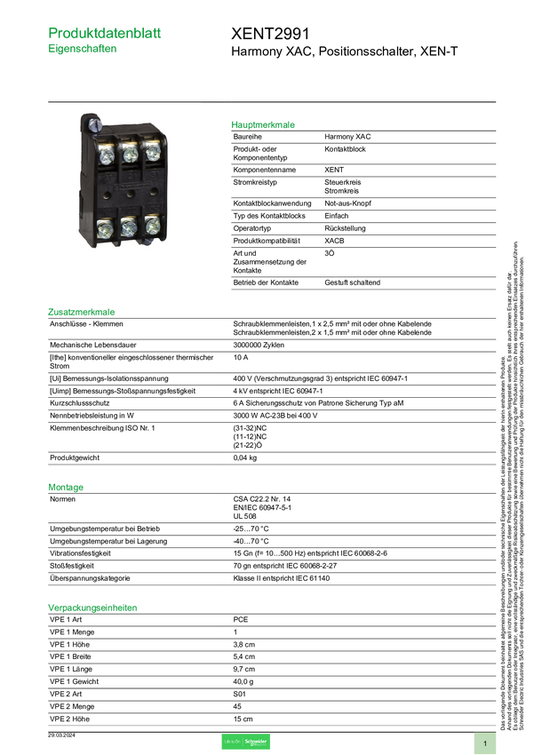 XENT2991 Przełącznik wskaźnika położenia Schneider Electric XENT2991 XENT2991, 1 szt...