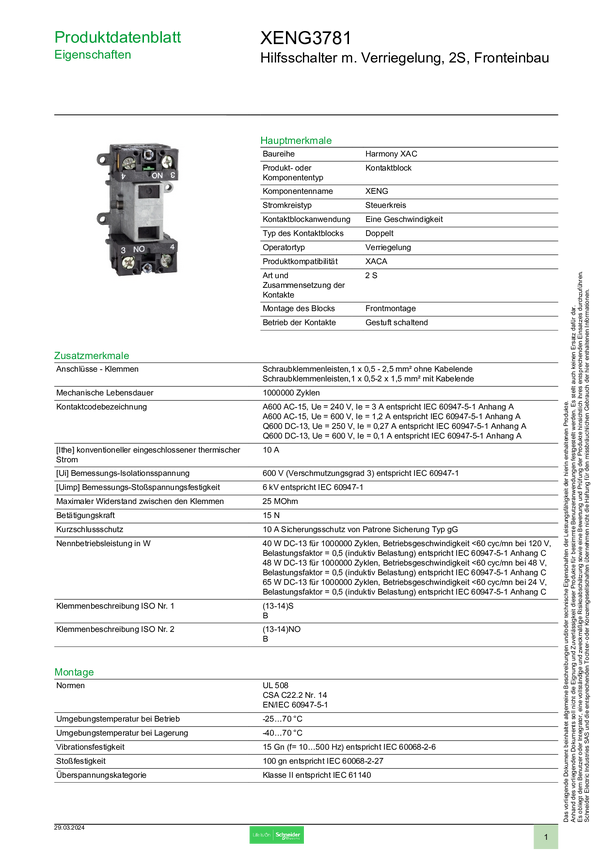 XENG3781 Schneider Electric XENG3781 Przełącznik pomocniczy 1 szt.