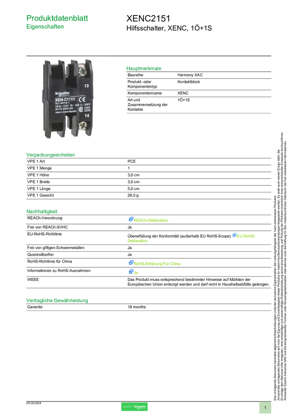 XENC2151 Przełącznik pomocniczy Schneider Electric XENC2151 XENC2151, 1 szt.
