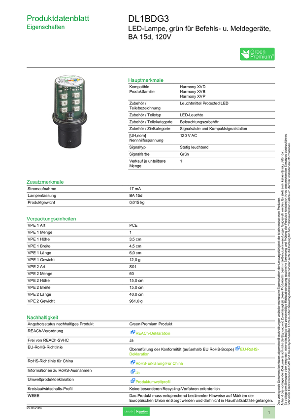 DL1BDG3 Element świecący LED Schneider Electric DL1BDG3