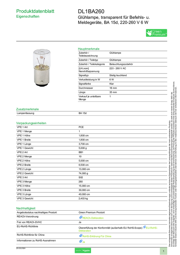 DL1BA260 Element świecący Schneider Electric DL1BA260