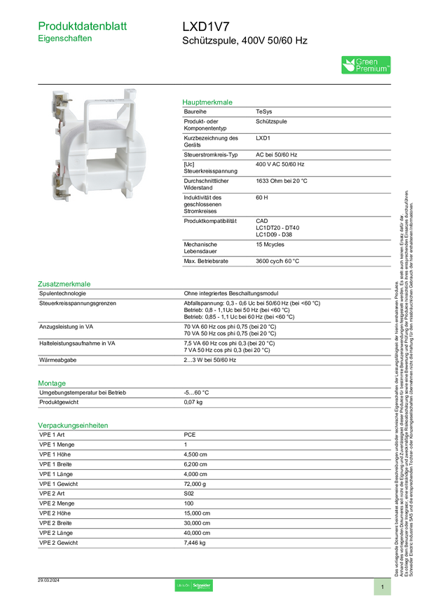 Stycznik Schneider Electric LXD1V7, 1 szt.
