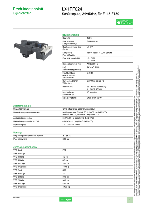 Stycznik Schneider Electric LX1FF024, 1 szt.