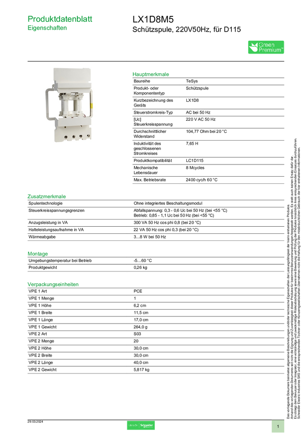LX1D8M5 Schneider Electric LX1D8M5 Stycznik 1 szt.
