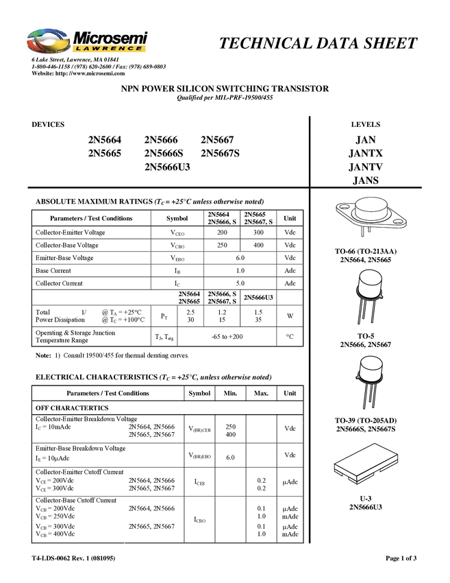 JAN2N5667-Transistor 2N5664 2N5665 2N5666 2N5667S