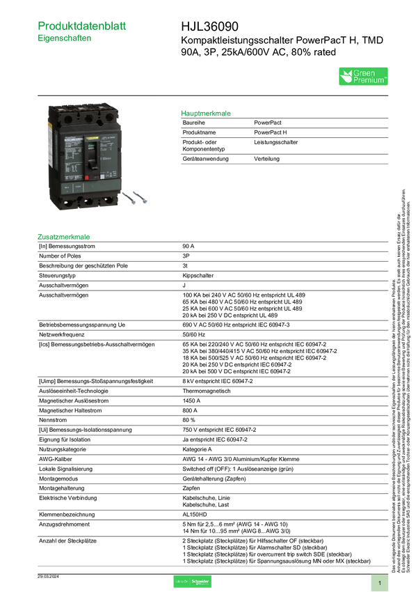 HJL36090 Wyłącznik zasilania Schneider Electric HJL36090 1 szt.