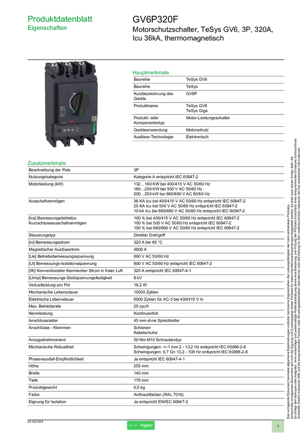 GV6P320F Przekaźnik ochronny silnika Schneider Electric GV6P320F 1 szt.