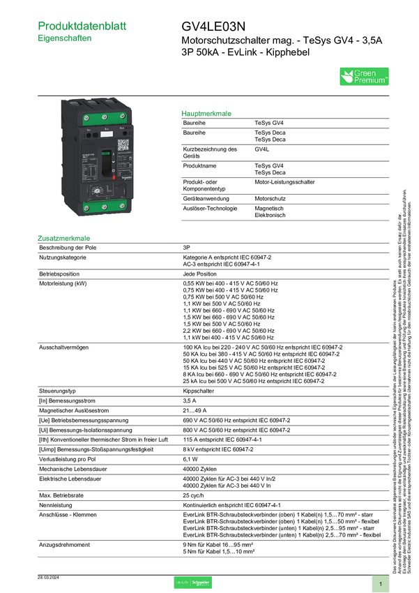 Przekaźnik ochronny silnika Schneider Electric GV4LE03N 1 szt.