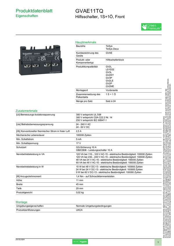GVAE11TQ Schneider Electric GVAE11TQ Przełącznik pomocniczy 20 szt.