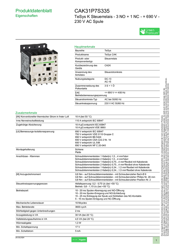 Schneider Electric CAK31P7S335 Stycznik standardowy 1 szt.
