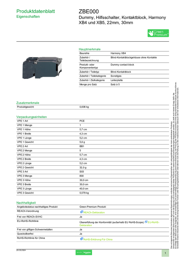 ZBE000 Blok styków pomocniczych Schneider Electric 5 szt.