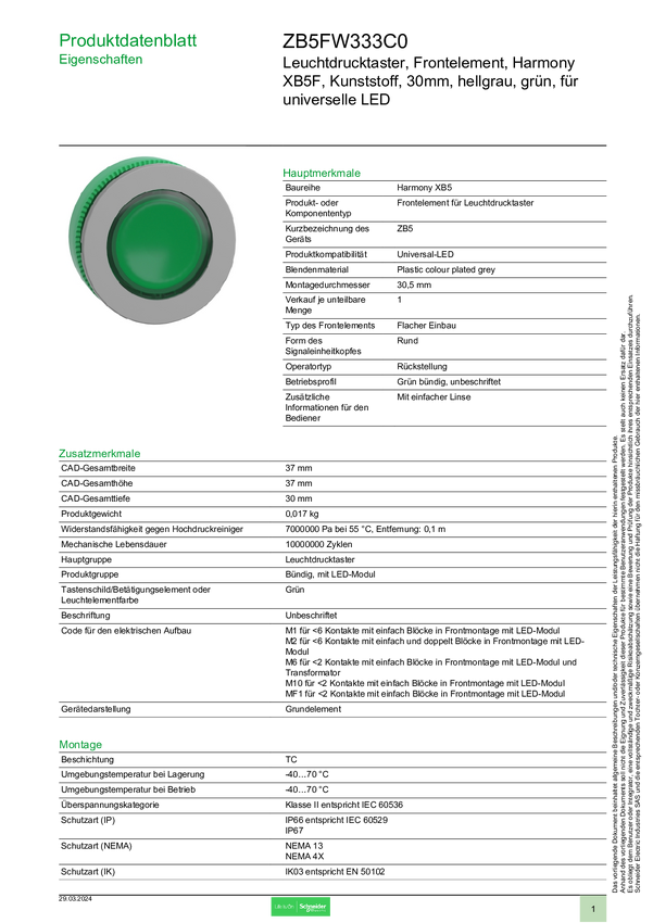 Schneider Electric ZB5FW333C0 Element przedni z przyciskiem 1 szt.