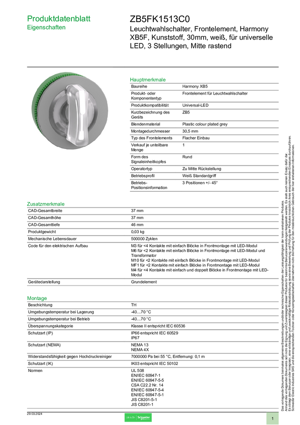 ZB5FK1513C0 Schneider Electric ZB5FK1513C0 Przedni element przełącznika selekcyjnego św...