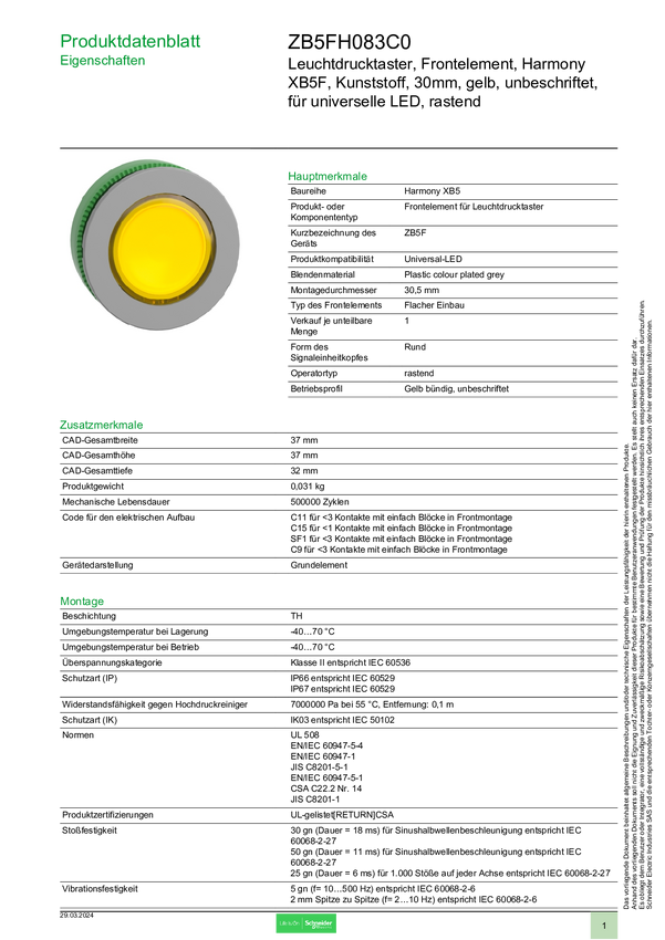 ZB5FH083C0 Schneider Electric ZB5FH083C0 Element przedni z przyciskiem 1 szt.