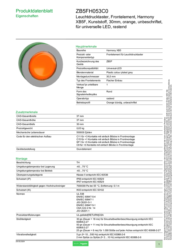 Schneider Electric ZB5FH053C0 Element przedni z przyciskiem 1 szt.
