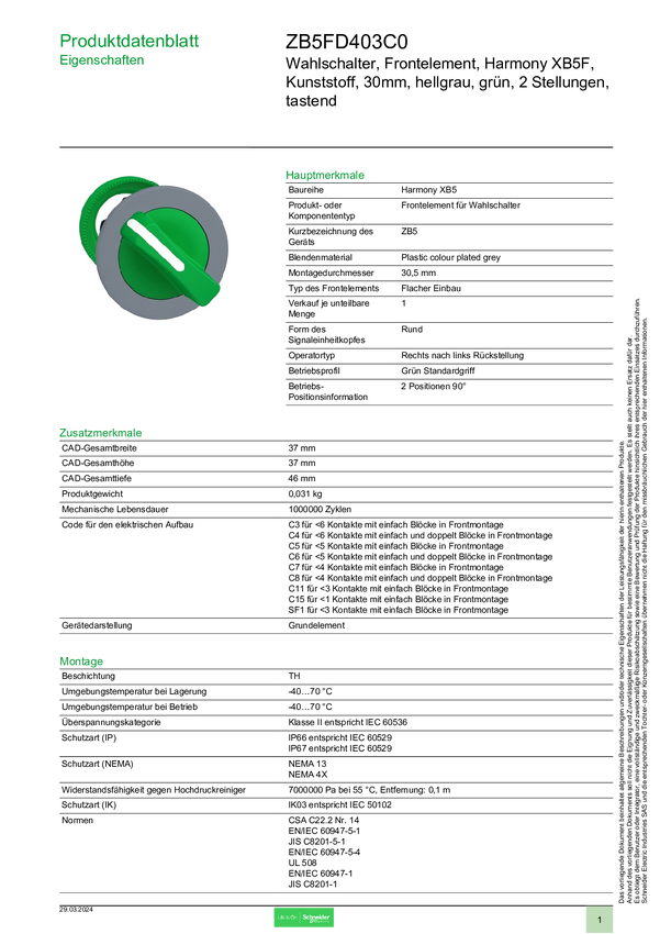 ZB5FD403C0 Schneider Electric ZB5FD403C0 Przełącznik wyboru, przedni element 1 szt.