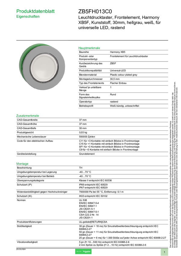 ZB5FH013C0 Schneider Electric ZB5FH013C0 Element przedni z przyciskiem 1 szt.