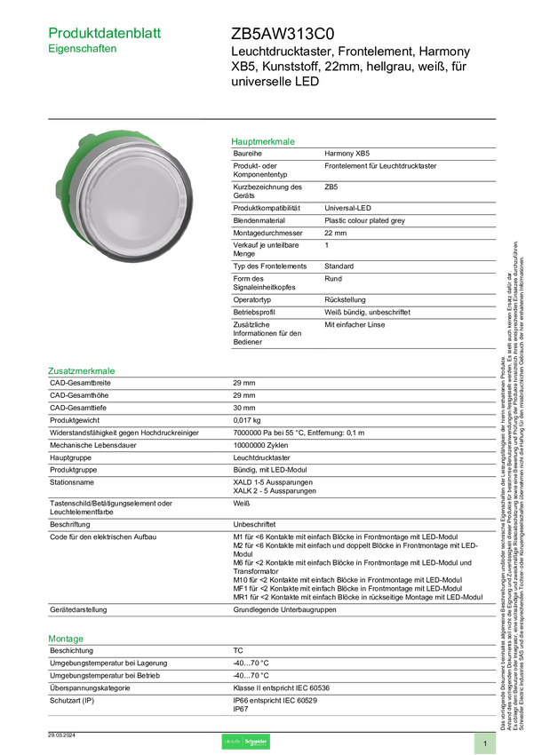 ZB5AW313C0 Schneider Electric ZB5AW313C0 Element przedni z przyciskiem 1 szt.