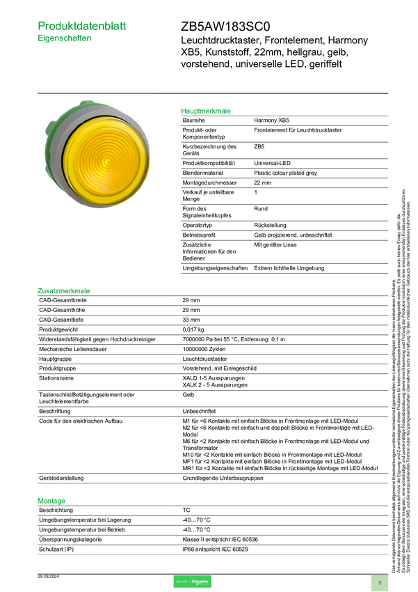 Schneider Electric ZB5AW183SC0 Element przedni z przyciskiem 1 szt.