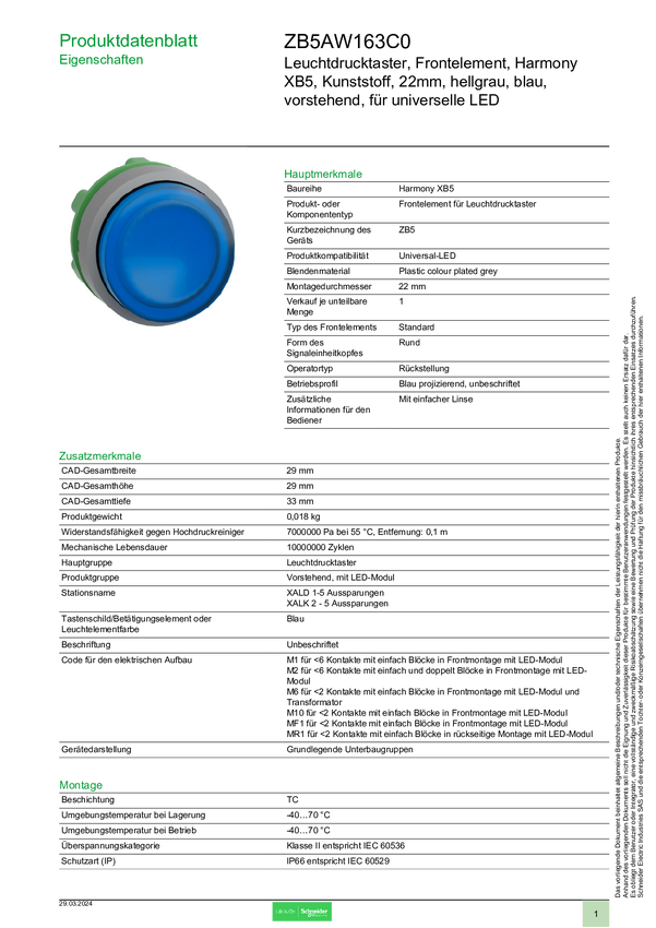 ZB5AW163C0 Schneider Electric ZB5AW163C0 Element przedni z przyciskiem 1 szt.
