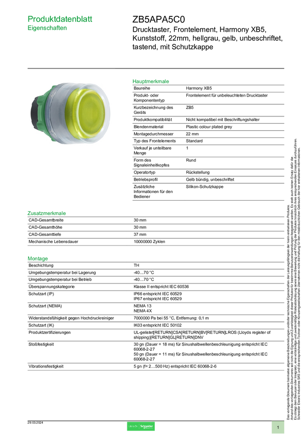 Schneider Electric ZB5APA5C0 Element przedni z przyciskiem 1 szt.