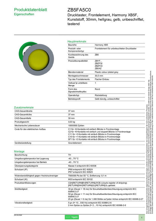 Schneider Electric ZB5FA5C0 Element przedni z przyciskiem 1 szt.
