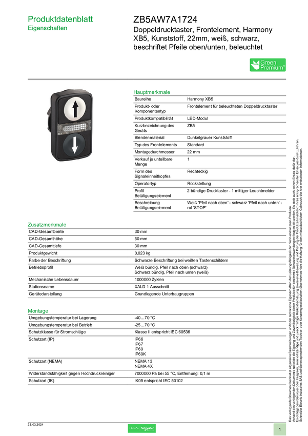 ZB5AW7A1724 Schneider Electric ZB5AW7A1724 ZB5AW7A1724 Podwójny przycisk przedni 1 szt.
