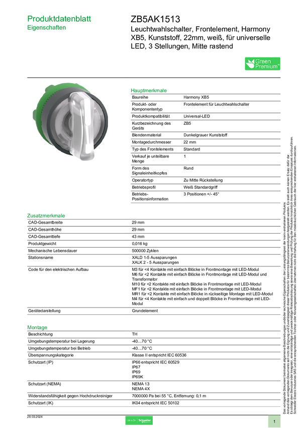 ZB5AK1513 Schneider Electric ZB5AK1513 Przedni element przełącznika selekcyjnego świa...