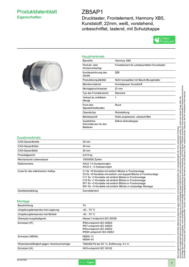 ZB5AP1 Schneider Electric ZB5AP1 Element przedni z przyciskiem 1 szt.