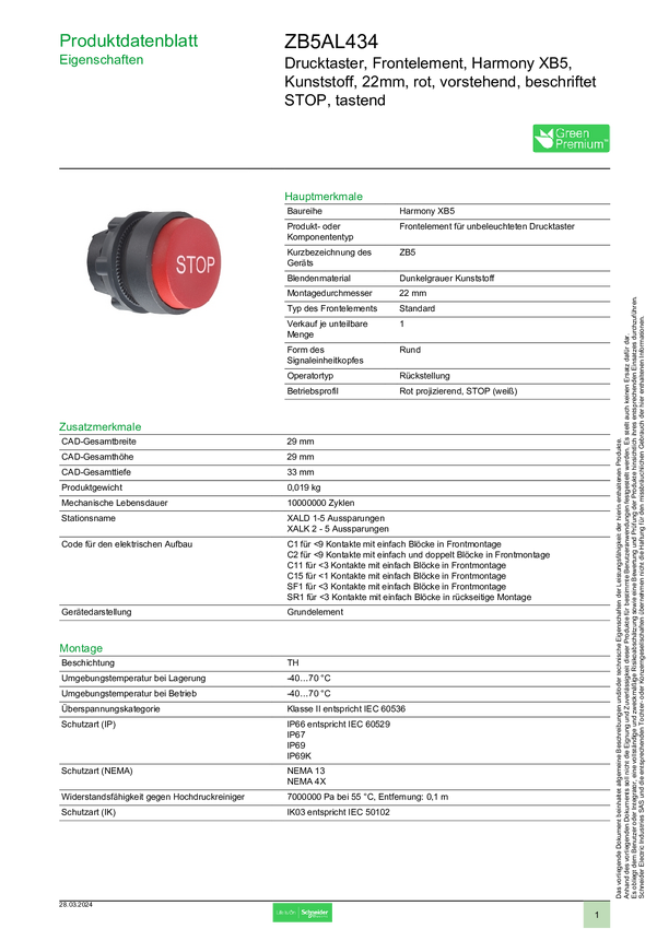 Schneider Electric ZB5AL434 Element przedni z przyciskiem 1 szt.