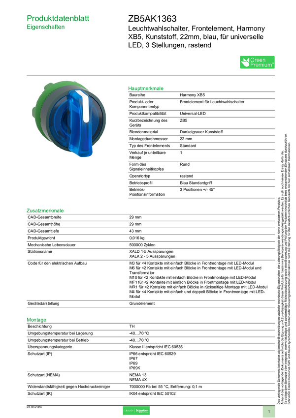 Schneider Electric ZB5AK1363 Przedni element przełącznika selekcyjnego światła 1 szt.