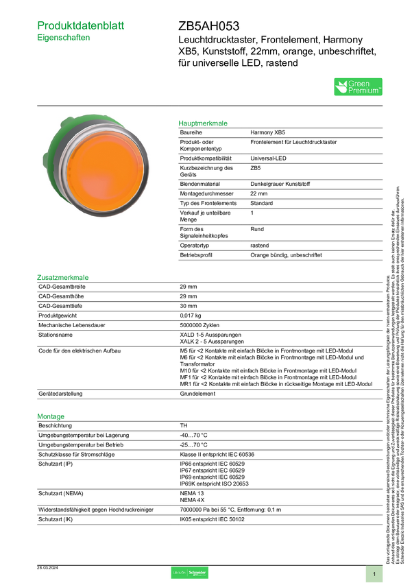 Schneider Electric ZB5AH053 Podświetlany element przedni z przyciskiem 1 szt.