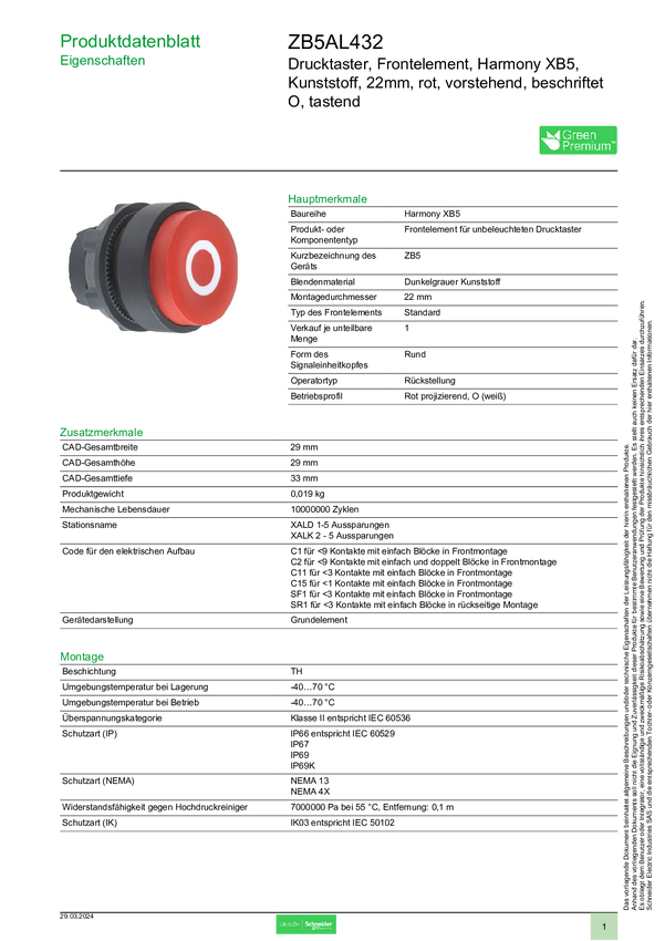 Schneider Electric ZB5AL432 Element przedni z przyciskiem 1 szt.