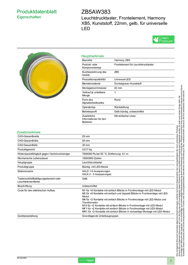 Schneider Electric ZB5AW383 Podświetlany element przedni z przyciskiem 1 szt.