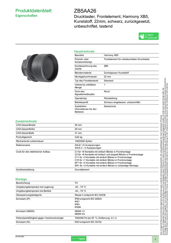 Schneider Electric ZB5AA26 Element przedni z przyciskiem 1 szt.