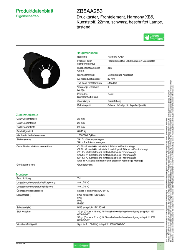 Schneider Electric ZB5AA253 Element przedni z przyciskiem 1 szt.