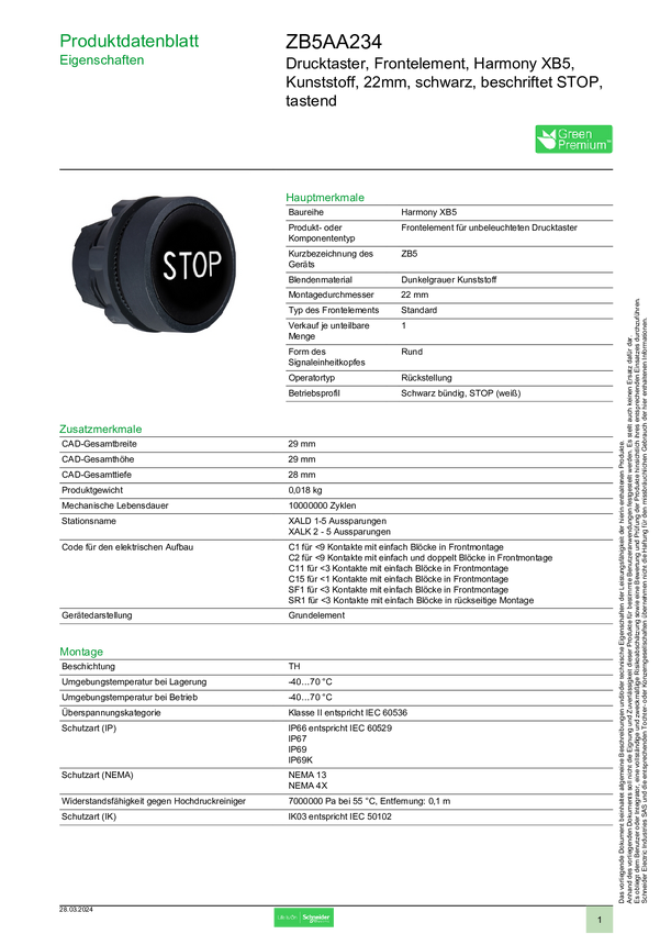 Schneider Electric ZB5AA234 Element przedni z przyciskiem 1 szt.