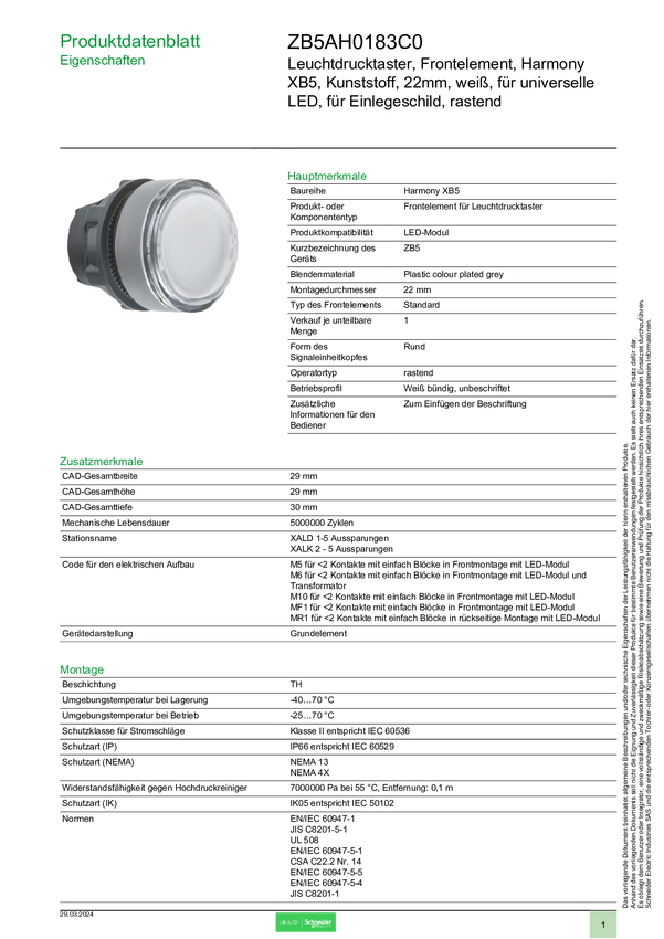 ZB5AH0183C0 Schneider Electric ZB5AH0183C0 Element przedni z przyciskiem 1 szt.