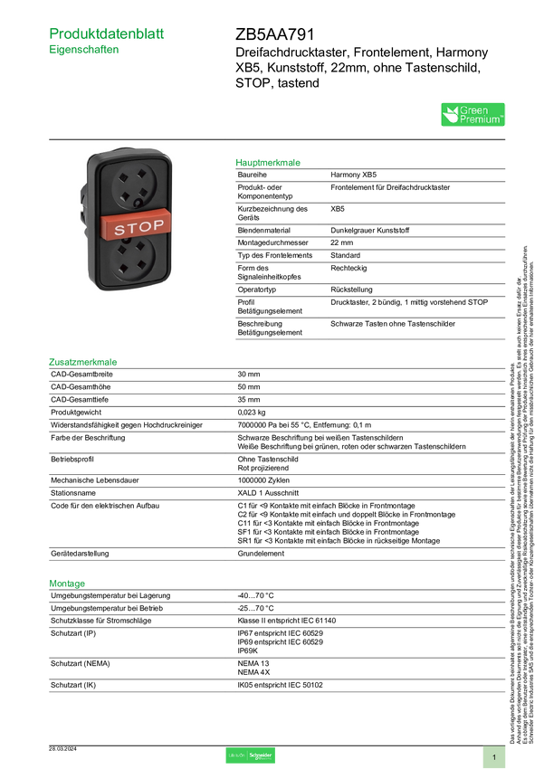 ZB5AA791 Schneider Electric ZB5AA791 Potrójny przedni przycisk 1 szt.