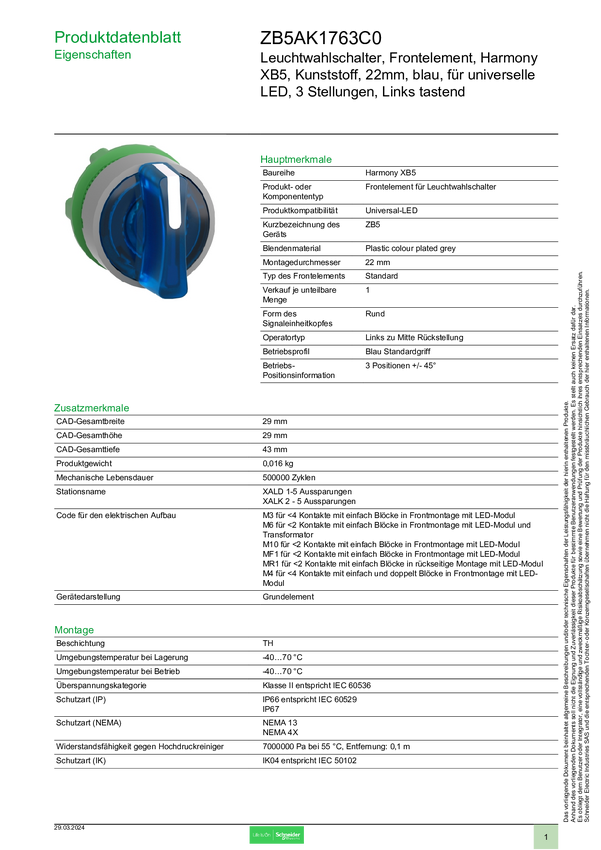 ZB5AK1763C0 Schneider Electric ZB5AK1763C0 Przedni element przełącznika selekcyjnego św...