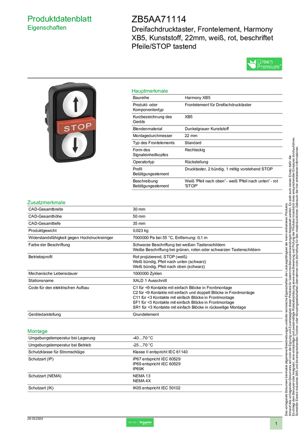 ZB5AA71114 Schneider Electric ZB5AA71114 Potrójny przedni przycisk 1 szt.